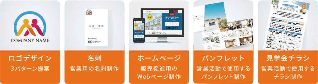 HPやロゴ、パンフレットなどを事業所ごとに作成